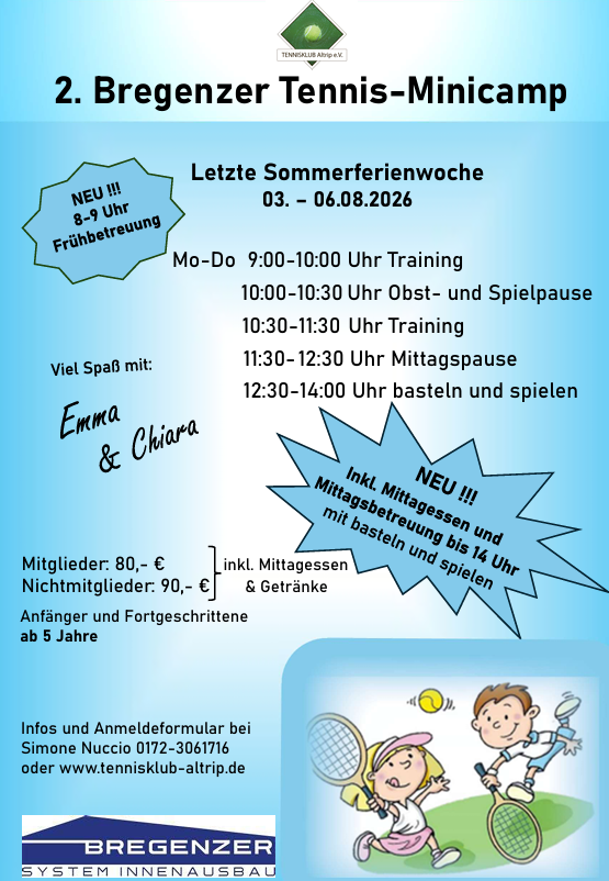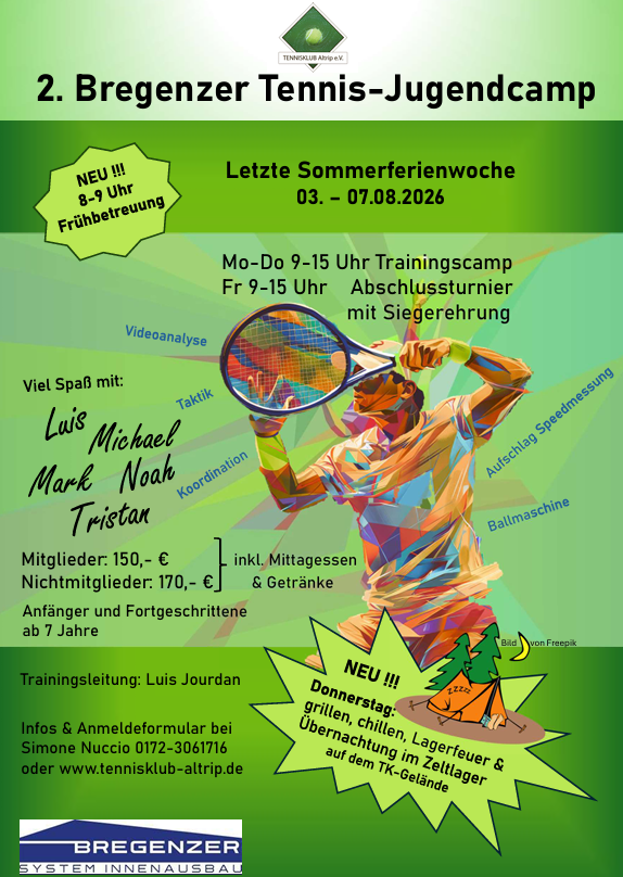 Sommer Tennis Camp für unsere Jugendlichen und unsere Minis ab 5 Jahren.